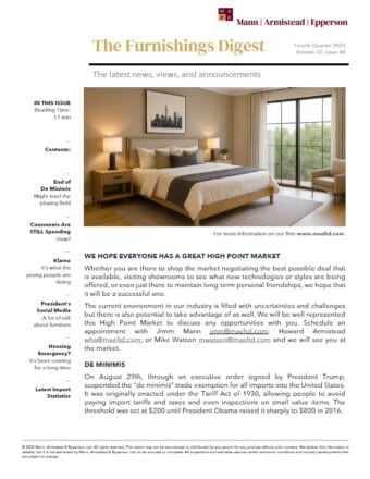 Read the MAE Fourth Quarter 2025 Furnishings Digest. Covered in this edition are: